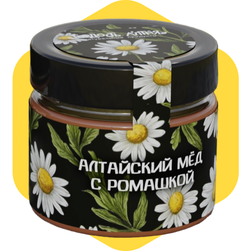 Мёд с ромашкой — это натуральный десерт и функциональный продукт одновременно. В его составе — цветочный мёд из Алтайского края и пищевое нерафинированное ромашковое масло, полученное методом холодного отжима.