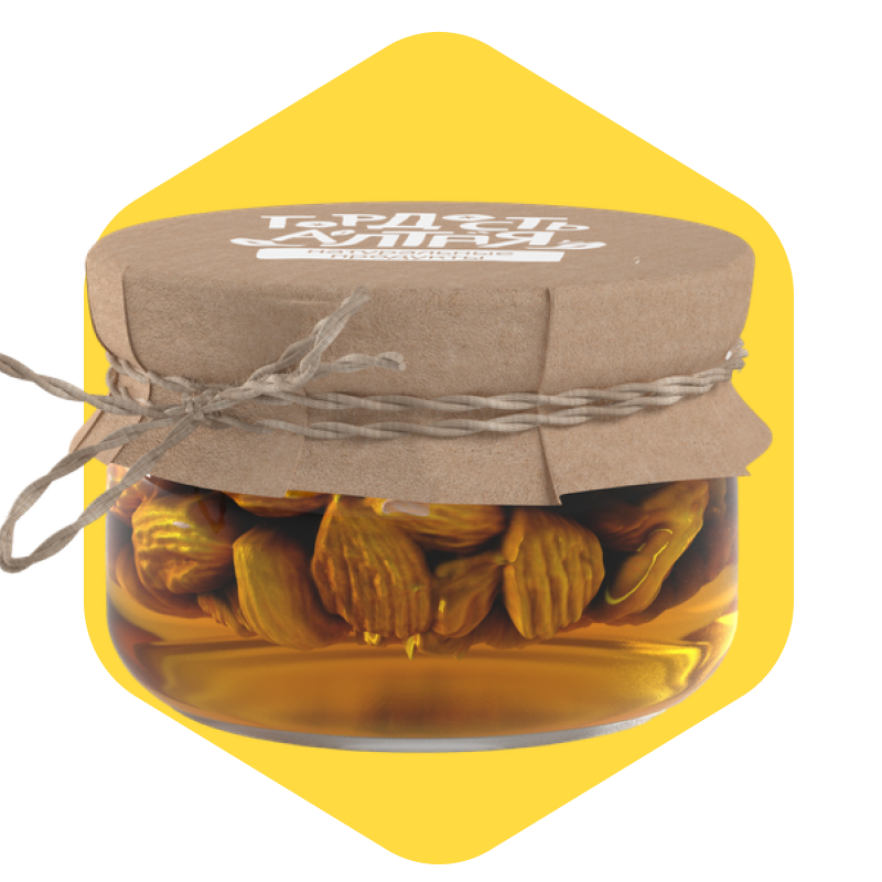 Миндаль в липовом мёде — это сбалансированный натуральный десерт, в составе которого — только два компонента: цельные ядра отборного миндаля и цветочный мёд, собранный в Алтайском крае. Продукт не содержит сахара, ароматизаторов, красителей и консервантов.